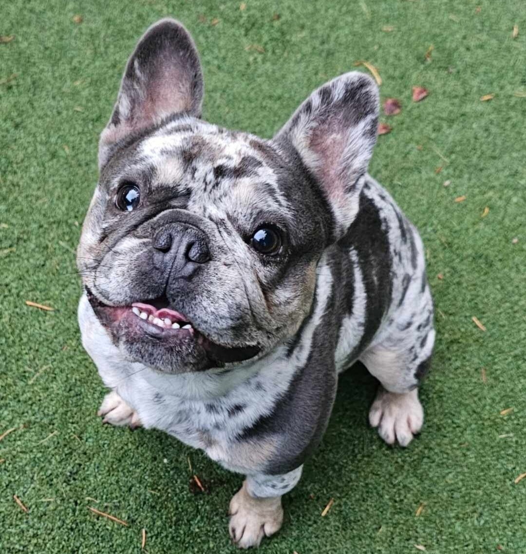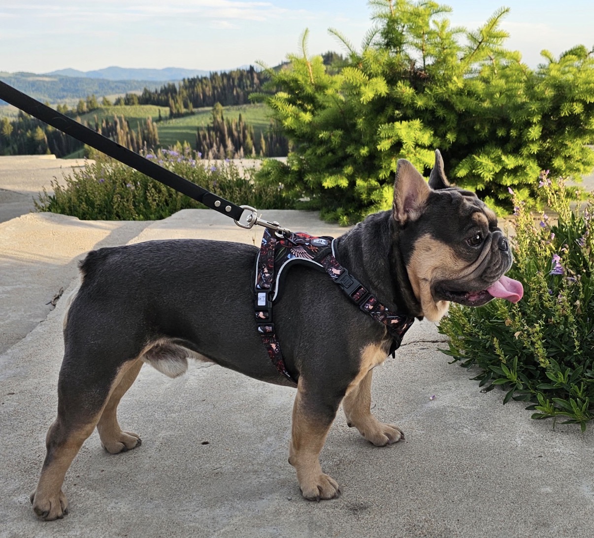 Meet Porter, our charming El Camino son! Porter is the epitome of a fun-loving and social Frenchie, always ready to brighten your day with his playful antics. Despite his energetic side, he’s also the ultimate snuggle buddy, earning his reputation as the biggest cuddler in our pack. Porter’s sweet temperament and friendly nature make him a standout stud and a joy to be around! He is 3 years old, is 6 panel health clear and OFA certified with mild hips, 0/1 patellas, and normal eyes, heart, and elbows. Weighs 22 lbs. Has a 10″ back and 18″ head.