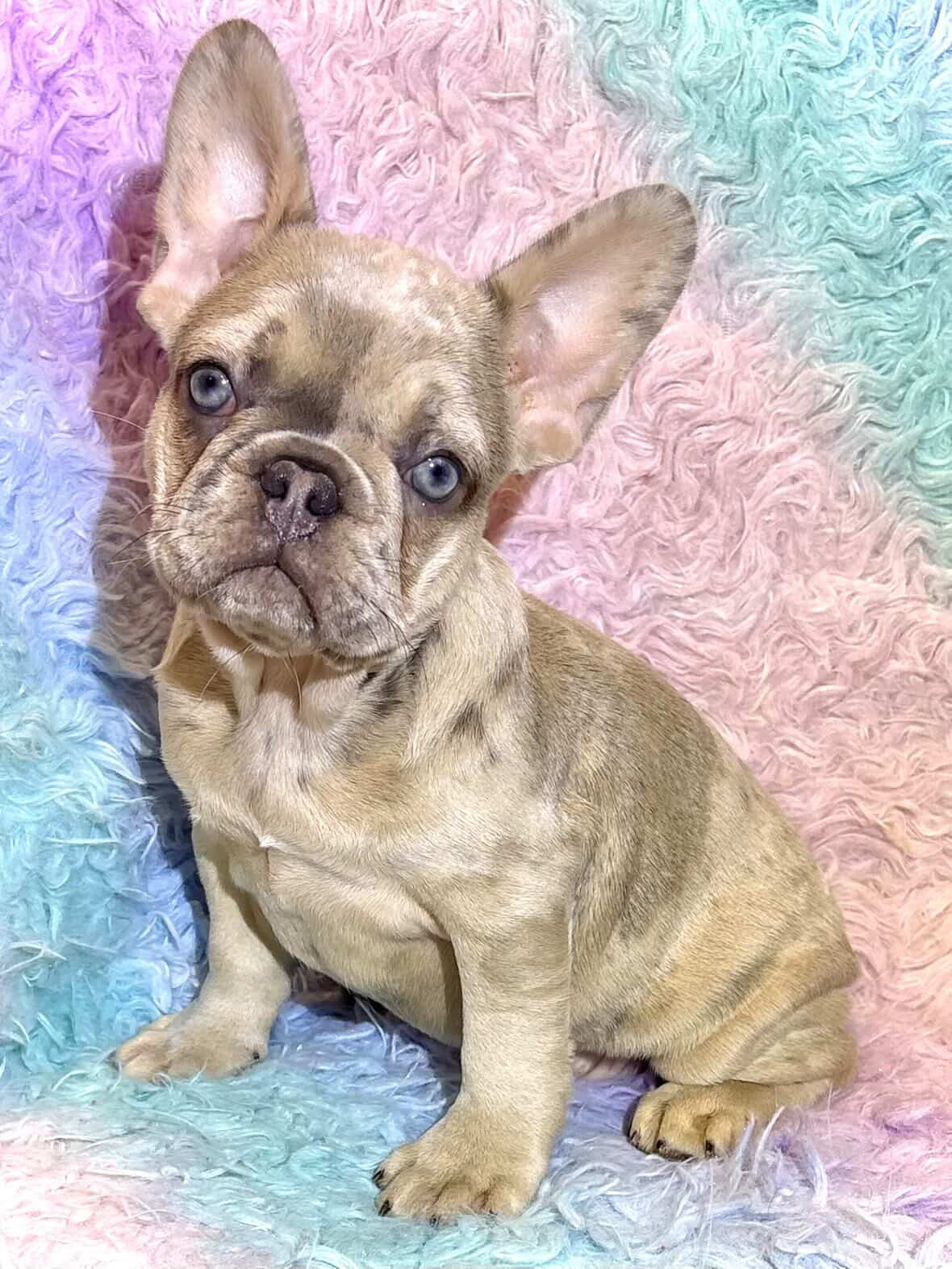 Sally is a 10 week old blue fawn merle female French Bulldog. She has a big personality and is very sweet and playful. She is sure to keep you laughing! She would fit in perfectly with any family. And yes! Her eyes will stay blue! She is ready for her forever home Today! She comes with a one year health guarantee. Both of her parents are health clear and OFA certified.