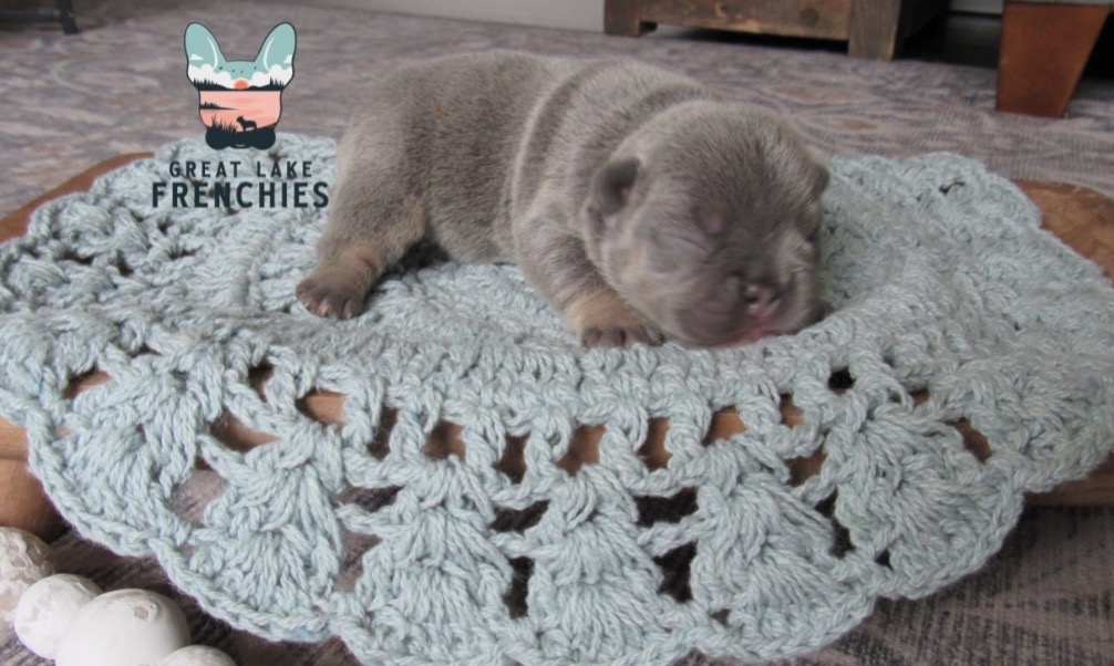Nebula is a 1 week old lilac and tan female French Bulldog. She is ready for her forever home 5/21/26. She comes with a one year health guarantee. Both of her parents are 6 panel health clear and OFA certified. Her parents are Clove and Porter.