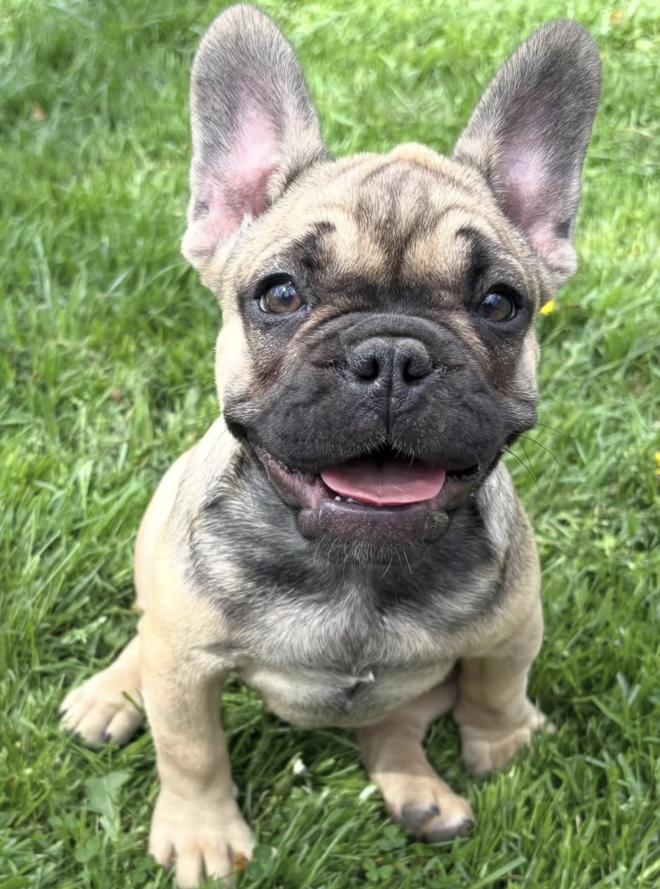 O’Malley is a 14 week old fawn male French Bulldog. He is very sweet and gentle. He would fit in perfectly with any family. He is ready for his forever home Today! He comes with a one year health guarantee. Both of his parents are health clear and OFA certified.